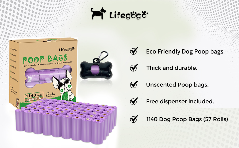 - 【What You Get】- You will get 57 rolls with 20 poo bags each, 1140 dog poo bags that supply up to 1 year (3 doggy poop bags per day usage)-- includes 1 reusable standard dog poop bag dispenser.