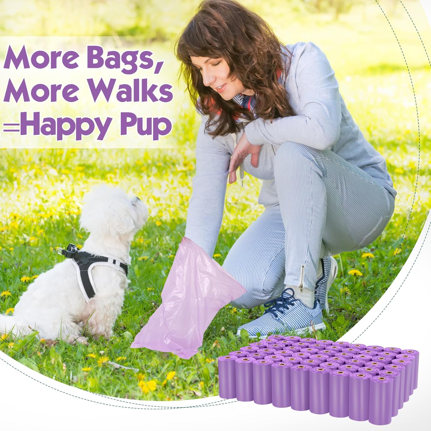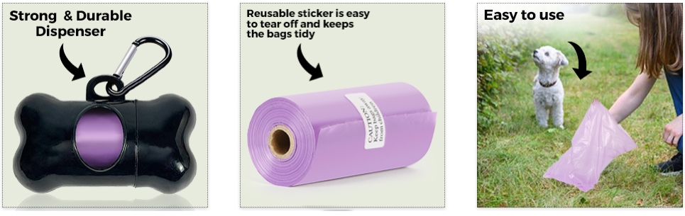 - 【Easy Tear-off】- The doggie poop bags is with good toughness and breakpoint design and the bottom easy-tear hole seam for quick detach bag from the roll. When you're on the go with your dog, you can enjoy stress-free outdoor walks with your dog!