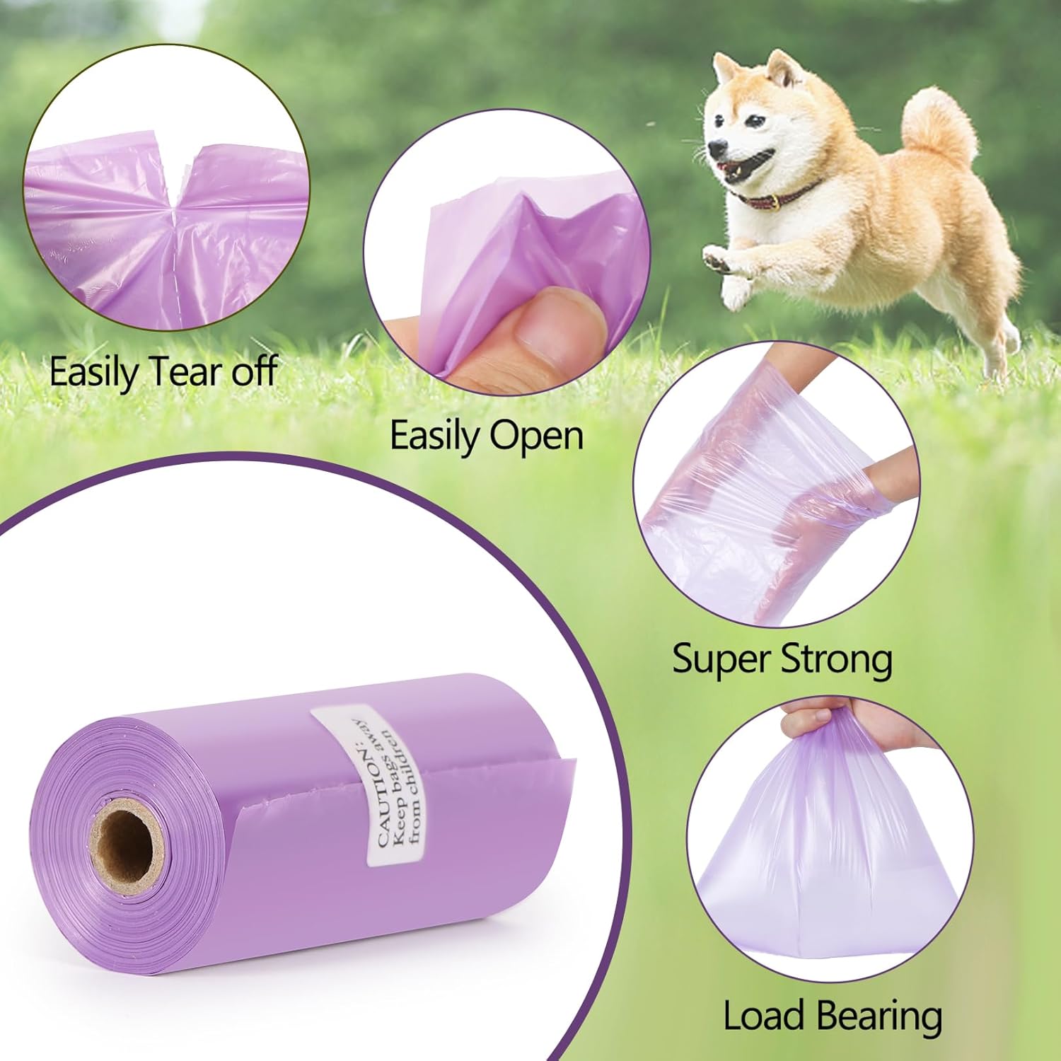 - 【Easy Tear-off】- The doggie poop bags is with good toughness and breakpoint design and the bottom easy-tear hole seam for quick detach bag from the roll. When you’re on the go with your dog, you can enjoy stress-free outdoor walks with your dog!