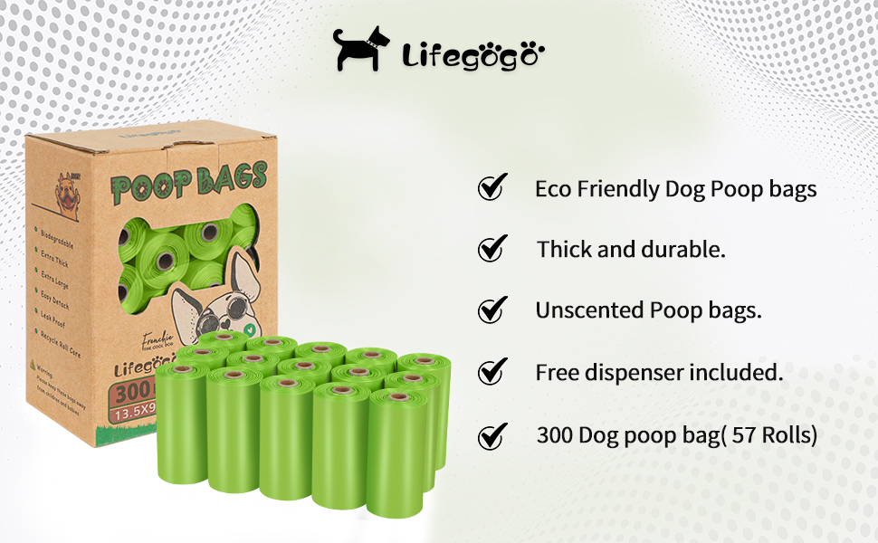 - 【Dog Poop Bags with Dispenser】- Each dog waste bags are measure 12.2 x 8.8 inches, and is large enough for most sizes of dogs and cats, enough to tie and pick up more pet poops. Poop Bags Set also can be used for cat litter clean up, baby dirty diapers, food scraps, or car litter disposing.