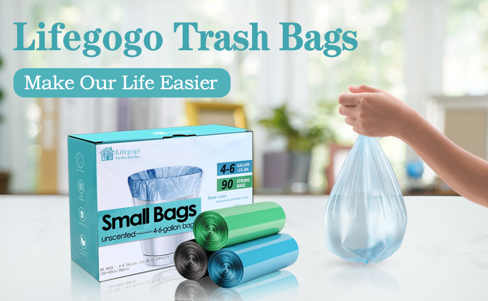 Lifegogo small trash bags are made of the newest pure PE with no smell, durable and strong enough to hold many kinds of garbage. This kind of material can make the small garbage bags stronger than other normal small garbage bags. It does no harm to people, you can use these small trash bags with confidence, even pregnant women or children can use it safely. And provide your home or office a quality life, make your life more convenient.