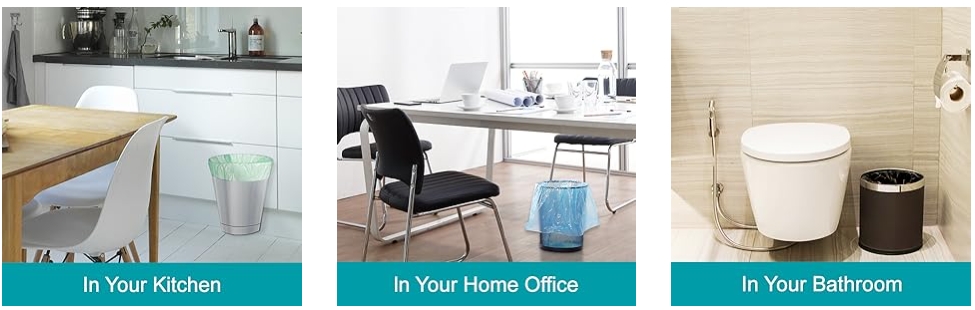 - 【Strong and Leak Proof Small Trash Bags】 These small trash can liners bottom octagonal design leave no space to leak, constant temperature sealing process to lock various leaks,our small trash can bags no breakable and excellent resistance to tearing.Please avoid sharp stuff.