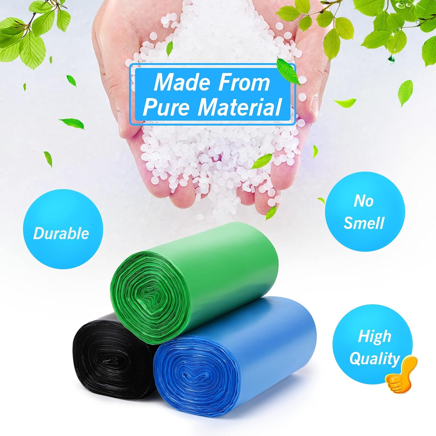 Lifegogo small trash bags are made of the newest pure PE with no smell, durable and strong enough to hold many kinds of garbage. This kind of material can make the small garbage bags stronger than other normal small garbage bags. It does no harm to people, you can use these small trash bags with confidence, even pregnant women or children can use it safely. And provide your home or office a quality life, make your life more convenient.